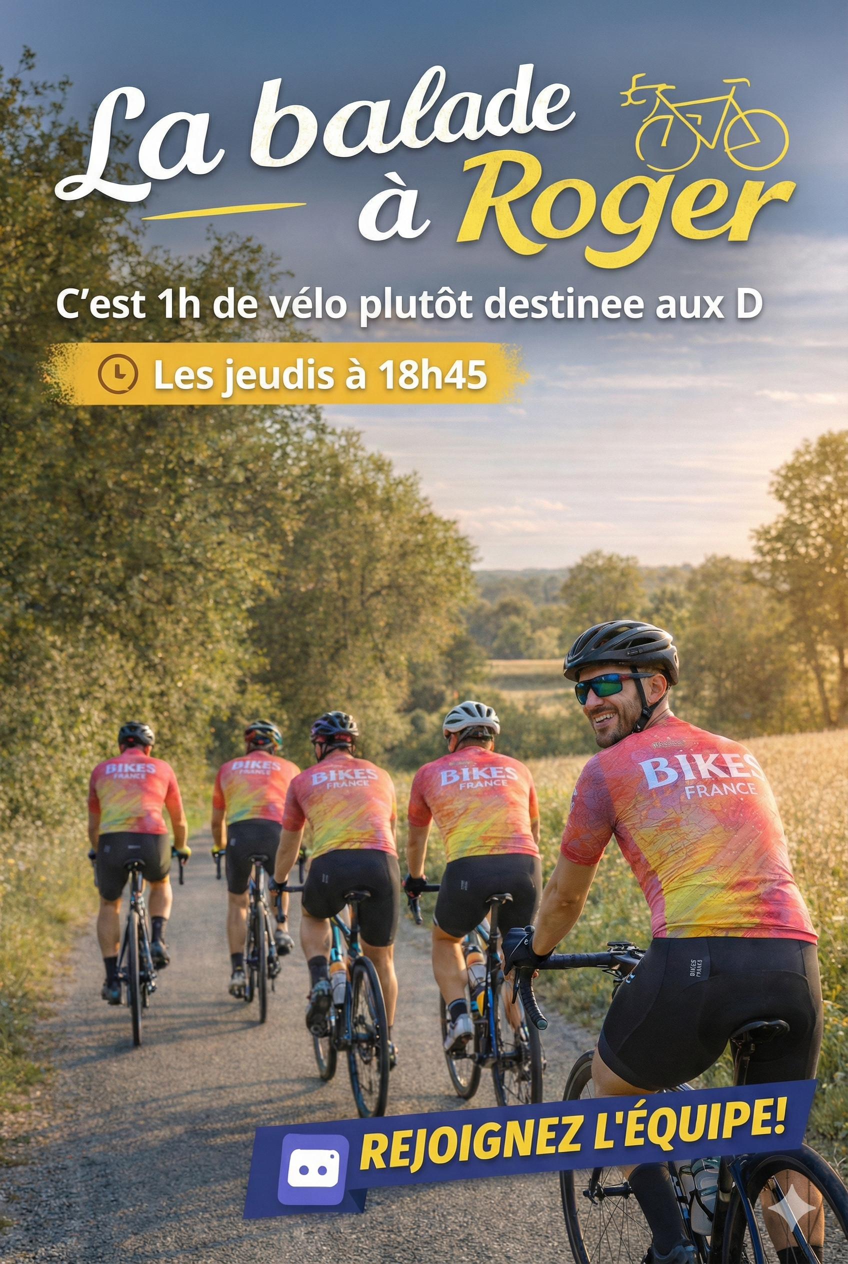 Tu aimes papoter en roulant alors tu seras la/le bienvenu.e. Un rythme tout en douceur de niveau D avec des Bikes qui se retrouvent apres une longue journée afin de se marrer et de refaire le monde.